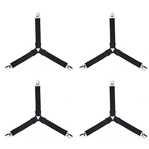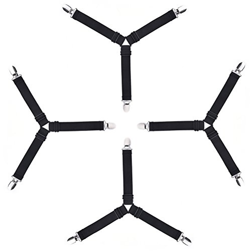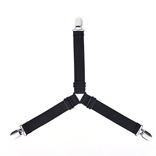 - Adjustable - Adjustable length allows desired tension. Keeps corners in place and no more worries. Made of durable elastic and nickel plated clamps. the clamps have a fabric protector so that no damage is caused to your bed sheet