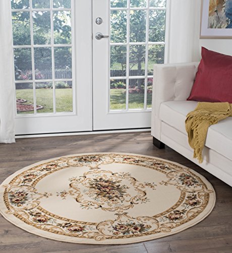Beige 5 ft. 3 in. Round Traditional Area Rug