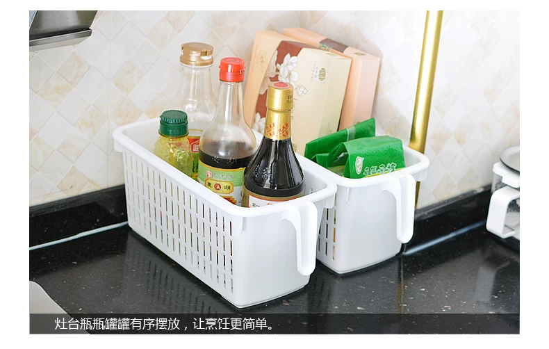 Japan imported multi-purpose storage basket with handle kitchen storage basket white plastic debris storage basketsEasy to pick up with a handle?
