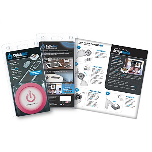 Studio : CableHub Publisher : CableHub Binding : Electronics Product Description CableHub is the ultimate cable management solution that keeps your cables, cords or wires from dropping to the ground once unplugged. This device reduces exposed cords for safety and convenience and is weighted for stable grip. Capacity: Organizes up to 7 cables or cords at once while keeping them stabilized, protected and tangle-free! Simply WRAP up to 10 feet of cable around the weighted disc and SNAP it shut. To adjust to the amount of cable desire, just unravel what you need and conceal the rest within your CableHub. Placement / Mounting: Place on any flat surface with our non-skid pad or mount to your wall with Velcro or 3M Tape adhesive (not included). Available in different colors and shapes, the top insert is completely customizable with your photo, logo or artwork by our FREE online Design Studio. 0
