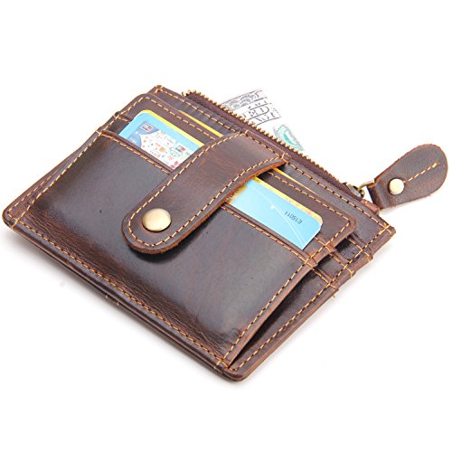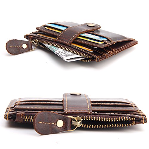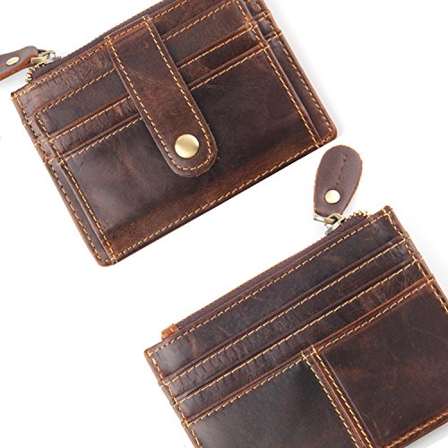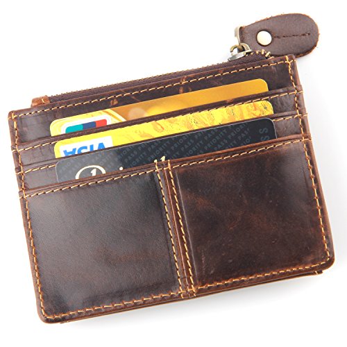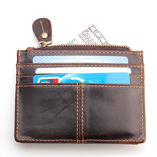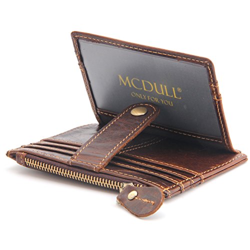 Mcdull Mens Genuine Leather Card Case Wallet Slim Front Pocket Zipper Coin Money Purse Holder w...