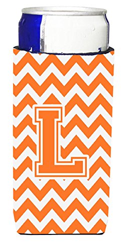 Letter L Chevron Orange and White Ultra Beverage Insulators for slim cans CJ1046-LMUK