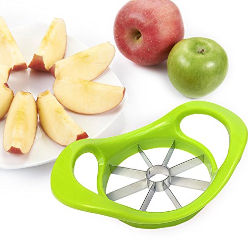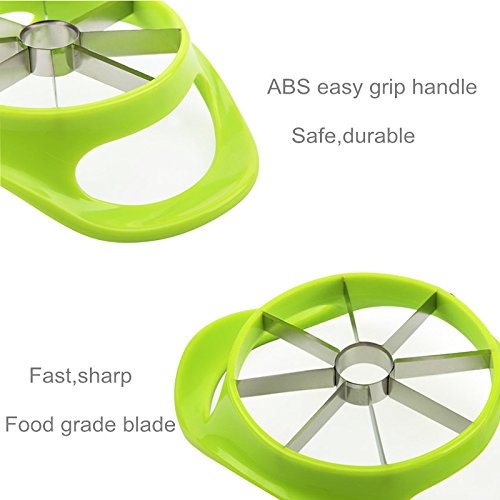 The basic function of apple corer/slicers in the marketplace are all the same,but our quality and design makes it a big difference.We have been committed to offering high quality products to improve healthy and happy kitchen home life.There are three points that contribute to apple corer/slicer which make it different from other apple corer slicers. 1.Fast apple slicer is a fun way to prepare fruit.It only takes a bit of force for adults to use this apple slicer in a short amount of time,and cut into 8 wedges perfectly sized.Suitable for most sized fruits such as apples and pears 2.Safe Convenient and practical,the distance between the handle and the blade is reasonable,through scientific calculations obtained,do not worry about cutting your fingers.There is no need to hold sharp knives to complete the tasks,this apple corer slicer does all tasks safety. 3.Precision The circle in the middle cuts out the core simply and easily.This corerslicer can cut a reasonable size,won't waste any of the fruit or leave any apple seeds need to be cut off.