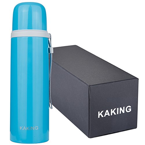 KAKING Insulated Cup Water Bottle Beverage Bottle Leak-proof Double Walled Travel Flask Keep Cold or Hot for More Than 24 Hours 16 Ounce (blue)