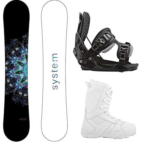 Studio : System Publisher : System Product Description Special MTNW Women's Snowboard Package : The perfect package for the female shredder! The MTNW features a flatrock camber allows for easy catch free riding and superior float on those dreamed of powder days. Strategically paired with Flow's patented rear entry step in binding design, you never have to sit down to strap in again! Finally we include the ultra warm Siren Lux snowboard boots to keep your feet dry and comfortable all day long.If you want snowboarding to be easier and more fun than ever this is the package for you! System MTNW Snowboard : System's newest ladies board, the MTNW is designed to help the female shredder push their riding while still providing an easy and fun ride! The all new flex patter on the MTNW allows it to push through and excel in choppier and harder conditions while adding even more power and pop! This is then combined with System's flatrock profile. The Flatrock shape creates a stable flat platform between your feet, and pairs with a rockered tip and tail to ensure you won't catch an edge in even the choppiest of conditions. Flow Haylo Snowboard Bindings: Performance, comfort and convenience! With the Haylo, convenience and comfort go hand in hand to create the softest and easiest riding women's binding. Focusing on comfort this molded plastic binding is sure to please. This lightweight design that includes performance features like EVA toe and heel inserts and Flow's ExoFit PowerStrap are forgiving enough to allow for a full-day riding. Siren Lux Women's Snowboard Boots : Siren's new boot design, the Lux, was built around maximizing comfort. Designed specifically for the way women ride, this boot will excel your riding while being so comfortable you would could wear them around the house! Additions such as a gel patch on the back of the boot alleviate stress points from highbacks ensure your feet will be living the dream while riding. 0