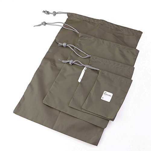 VORCOOL Outdoor Waterproof Storage Bags Travel Nylon Drawstring Storage Bags Pouches Organizers in Different Sizes 4pcs Olive Green