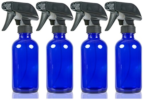 8 oz Glass Spray Bottles - NatureO Empty COBALT BLUE Spray Bottles with Trigger Sprayer - Two Sprayer Settings Stream or Mist - 4 pack