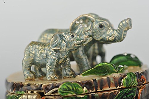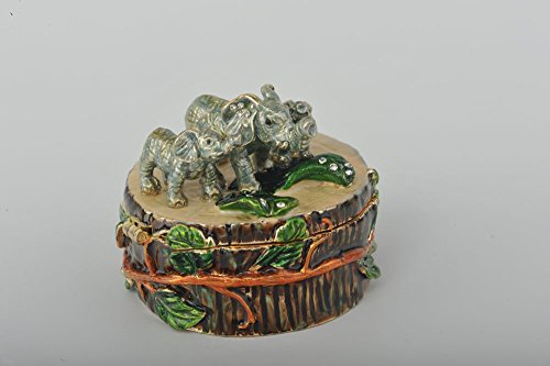 Three Elephants on Tree Trunk Faberge Styled Trinket Box