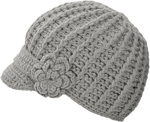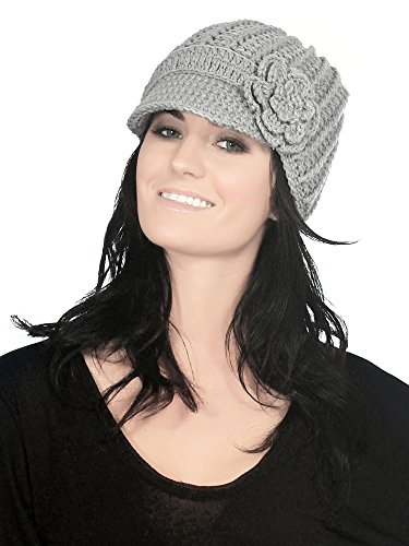 Style: Cable Knit Visor Beanie with Crochet Flower