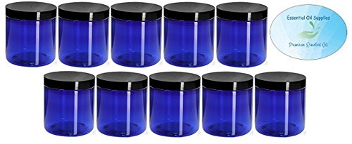 2 Ounce Cobalt Blue PET BPA-Free Plastic Empty Refillable Straight Sided Jar with Smooth Black Lids (Pack of 10)