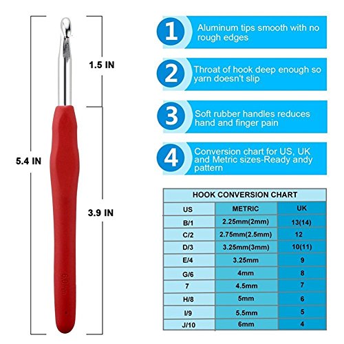 - Reasonable And Humane Design: Metric measurements and letter are all include on crochet hooks to indicate size, The soft rubber grip handles which makes them comfortable and easy to grip while working on all crochet projects.