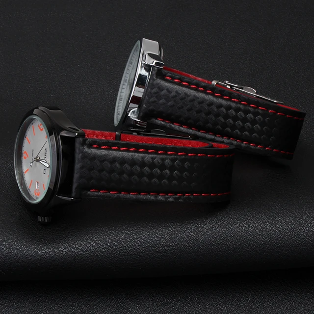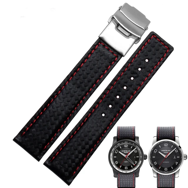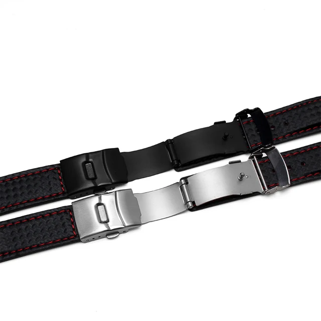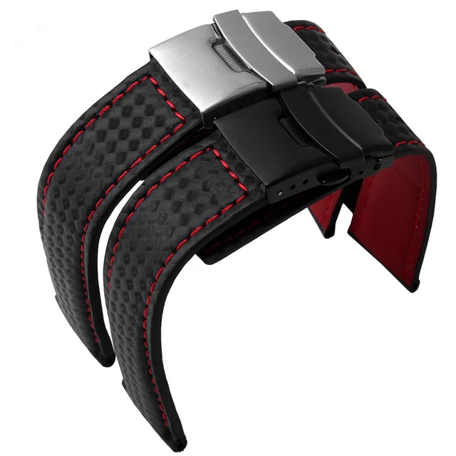 [해외] 새로운 도착 시계 밴드 팔찌 20 미리메터 22 미리메터 탄소 섬유 시계 스트랩 블랙 배포 스틸 버클 소 가죽 바닥 패션
