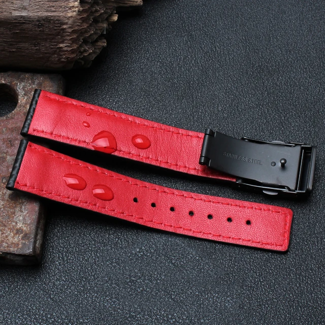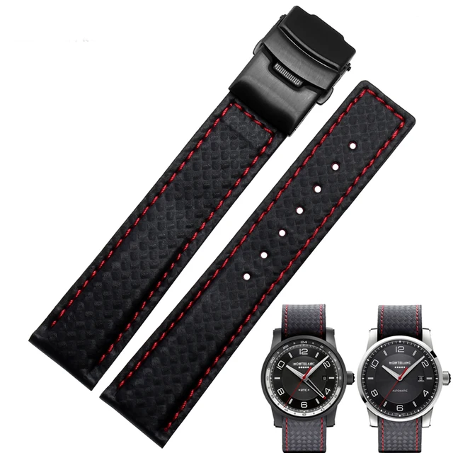 새로운 도착 시계 밴드 팔찌 20 미리메터 22 미리메터 탄소 섬유 시계 스트랩 블랙 배포 스틸 버클 소 가죽 바닥 패션