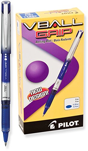 Pilot VBall Grip Liquid Ink Rolling Ball Pens, Fine Point, Blue Ink, Dozen Box (35571)