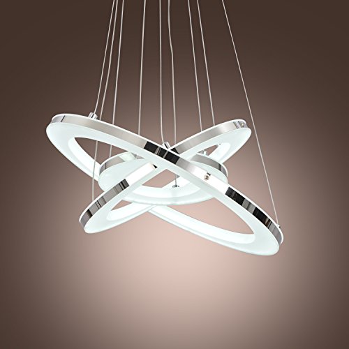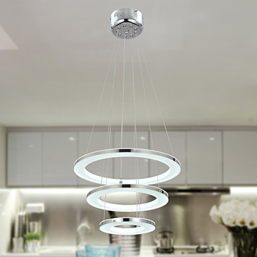 UNITARY BRAND Modern Nature White LED Acrylic Pendant Light With 3 Rings Max 33W Chrome Finish