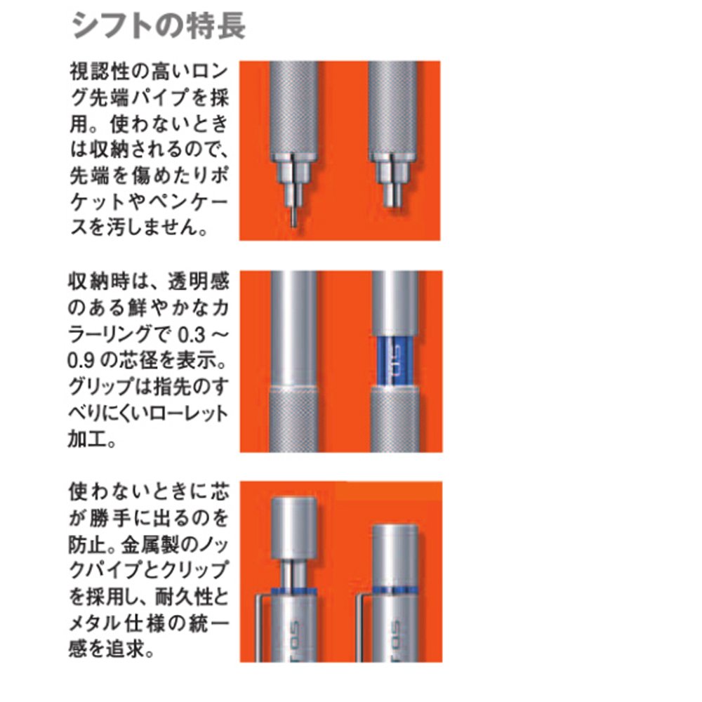 Uni Shift Pipe Lock Drafting 0.5mm Pencil Silver Body with Blue Accent (M51010.26)