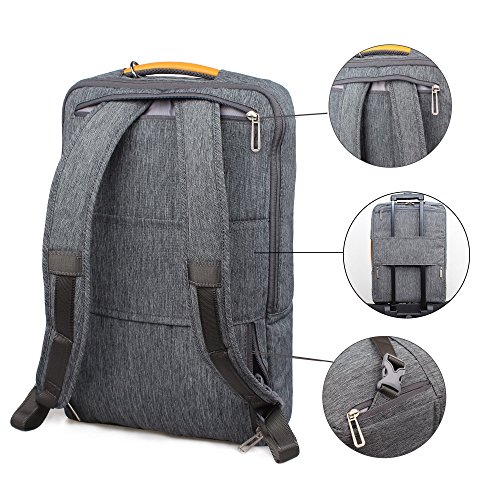 Convertible hideaway straps: This laptop bag is perfect for any occasion.It allow for a no-fuss conversion from briefcase to backpack at any moment. Three back compartments unzip to reveal straps & buckles, and with two quick snaps it's done.