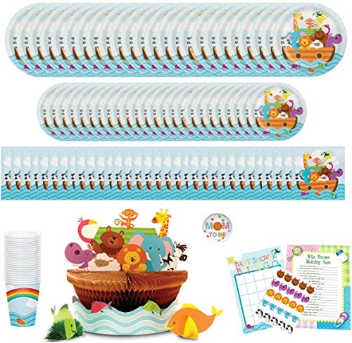 Noahs Ark Baby Shower Party Supplies: Paper Plates, Napkins, Cups, Centerpiece and Games Bundle for 24 Guests