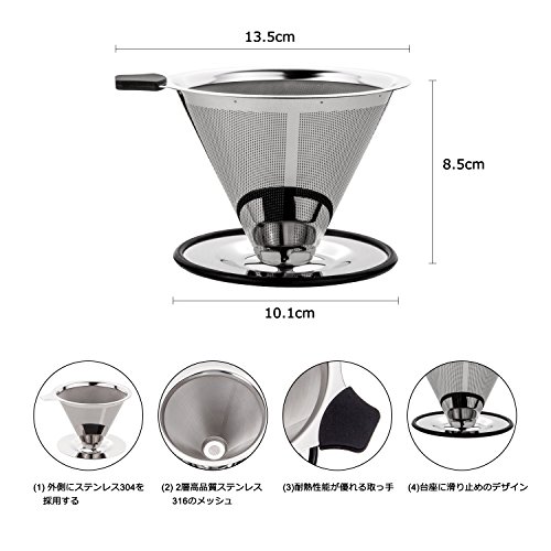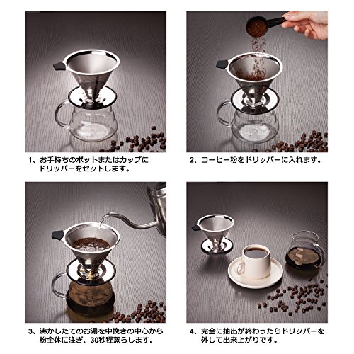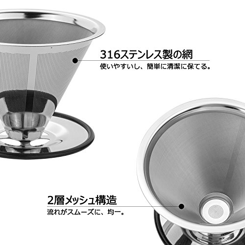 원본상품명: MOCREO(モクリオ) コ?ヒ?ドリッパ? セット ペ?パ?レス ステンレスフィルタ? 二重メッシュ 全面濾過 1~4杯用