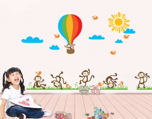 -. Title : Toprate (TM) 140x80cm Nursery Cheeky Monkey Hot-air Balloon Wall Art Stickers Decal for Nursery Home Decor Boys and Girls Children Courtyard Baby Room