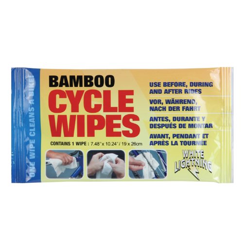 ReleaseDate : 2012-10-01 Studio : White Lightning Publisher : White Lightning Binding : Sports Product Description Cycle Wipes are perfect for cleaning up your bike or person after a ride or repair. Use before or after a ride. Safely Cleans Hands and Legs, Chain and Derailleurs, Frame and Fork, Saddle and Shoes, Rims and Tires, more.. Tough Durrable Tear-Resistant Bamboo cloth. Natural and Sustainable Material. Larger than the competition's wipes, more absobant than cotton. Biodegreades when disposed. 0