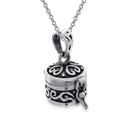Our .925 Silver Round Antique Style Poison Prayer Box Locket Pendant is a silver locket that is going to steal your heart. Crafted from .925 Sterling Silver and inscribed with a heart clover design, this charming Celtic jewelry elegant, intricate, and a touch exotic. Open the lid and enclose a meaningful memento. Inspirational and personal, prayer boxes have been valued in many cultures for centuries. Buy several jewelry box necklaces today as gifts for all those special people in your life. 18 Inch Rolo Chain Included