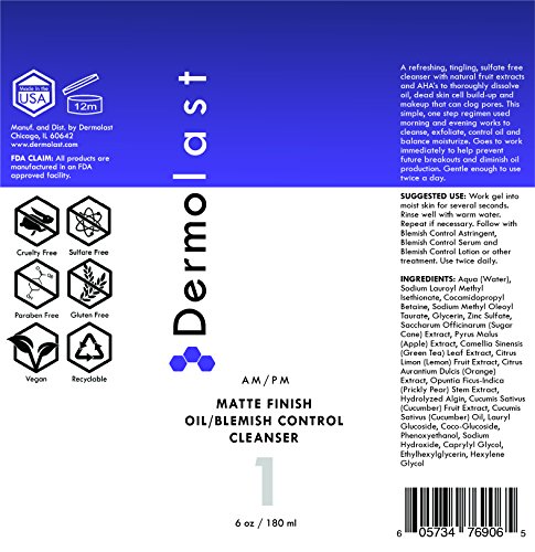 Dermolast Matte Finish Oil / Blemish Control Cleanser– 6oz