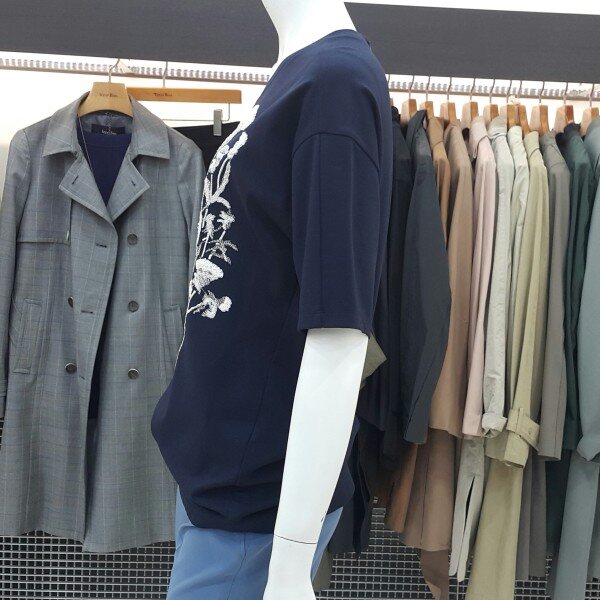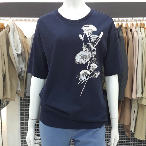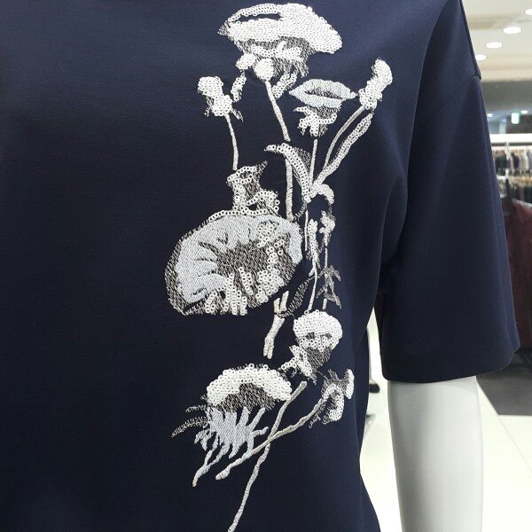 페미닌한 무드의 티셔츠입니다베이직한 깔끔한 라운드넥으로프린팅이 아닌 자수 포인트로세련된 디자인의 광택감이 부드러운소재로 신축성이 있어 편안한아이템으로 연출해 보세요
