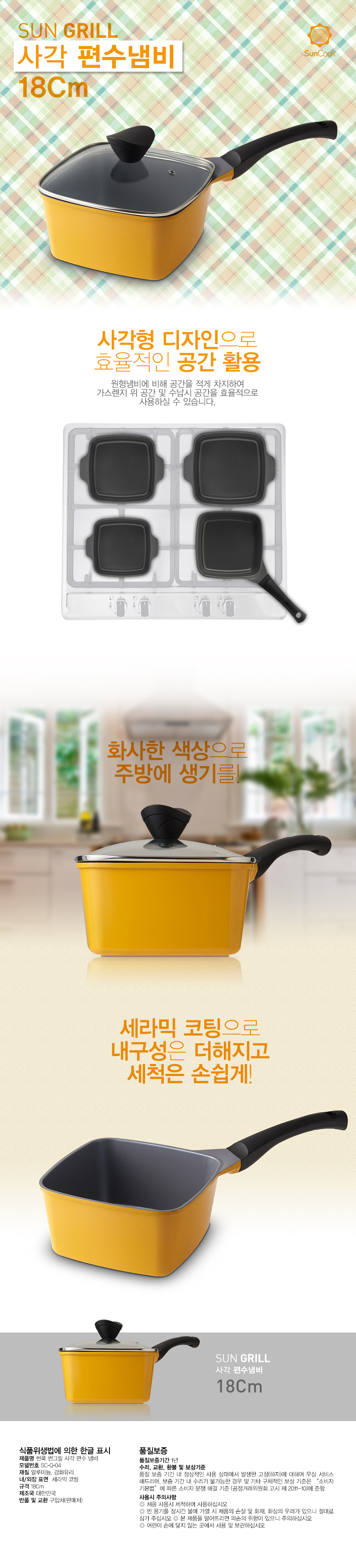 - 품명 및 모델명썬그릴 사각냄비 18cm 편수
