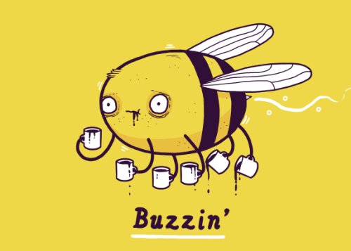 "Buzzin" Funny Bumblebee Drinking Coffee - Rectangle Refrigerator Magnet