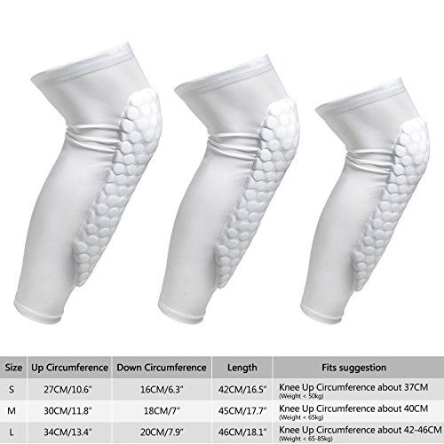 Nice workmanship, strong honeycomb design which is big to 31cm*13cm approximately to protect leg from crash,the fabric is breathable and elastic. as well with anti slip band, no easy to fall off. Well protect muscles from pulling during in outdoor activities such as basketball, football, cycling, golf, baseball... Specification: Material: high quality soft elastic polyester fabric Color:Red/Black/White/Blue Size : S/M/L Size: S Up Circumference: 27cm/10.6" Down Circumference: 16CM/6.3" Length: 42cm/16.5" Fit Suggestion Weight: child,or whose weight less than 50KG Size: M Up Circumference: 30cm/11.8" Down Circumference: 18cm/7" Length: 45cm/17.7" Fit Suggestion Weight: less than 65KG Size: L Up Circumference: 34cm/13.4" Down Circumference: 20cm/7.9" Length: 46cm/18.1" Fit Suggestion Weight: Weight 65KG-80KG NOTE: 1)It is manual measurement, there may be 1-3cm error. 2)Item color displayed in photos may be showing slightly different on your computer monitor since monitors are not calibrated same. 3)The new product has a slight flavor, please use it before place it to the ventilation or wash it. 4)Please wash by hand, if you use the washing machine to wash, please put in the laundry bag to protect it.Thank you for your understanding. Package Includes: 1* Basketable Crashproof Knee Protect pad 0 |