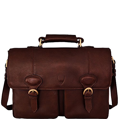 -. Feature : Leather: Hidesign's unique full grain vegetable tanned Classic leather / Lining: Hidesign's signature 100% cotton green striped lining / Closure: Tuck tie closure beneath buckles / Handles & Strap: Adjustable and detachable canvas webbing shoulder strap with leather shoulder pad and leather top handle / Interior Details: Multiple internal zip and slip compartments and pockets to store phones, cables, pens and other miscellaneous items; 2 large front compartments. Laptop compartment is padded