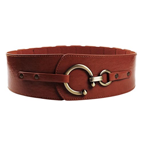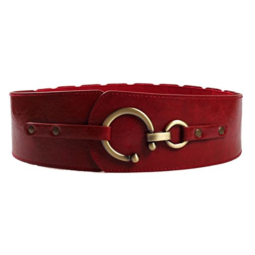 (Voberry)/Accessories/Belts Buckles/DIRECT FROM USA/Voberry® Women's Fashion Twis ted Circle Buckle s tretch High leather Wais t Belt Red for Ladies
