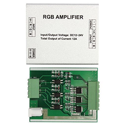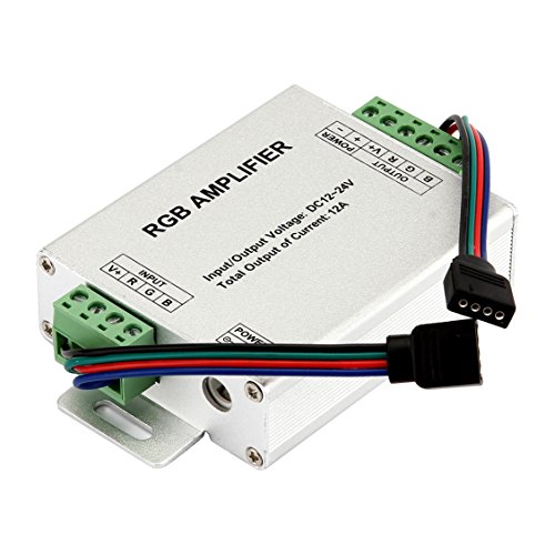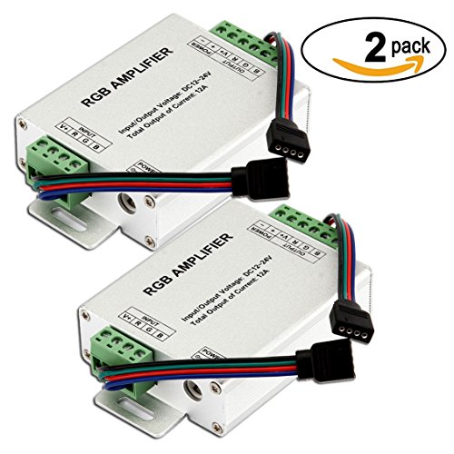 SUPERNIGHT DC 12V to 24V 12A LED Strip Lights 3 Channels RGB Signal Amplifier Repeater for 10m 4 Pin 5050 3528 LED String Lights -- 2 Pieces Pack