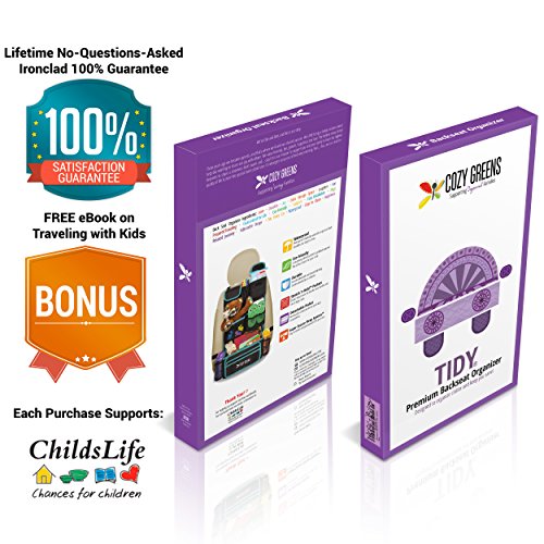 LIFETIME MONEY-BACK SATISFACTION GUARANTEE. All original Cozy Greens® products come with a LIFETIME guarantee. If you experience ANY problems with your backseat organizer FOR THE LIFETIME OF THE PRODUCT, contact us and we will refund your entire purchase, AND ship you a new organizer FREE of charge. NO questions asked. Order your Cozy Greens® Backseat Organizer today and experience the sanity that comes from a well organized vehicle. AMAZON CUSTOMERS SAY "Your car will thank you!" "Even Stores Diapers!"