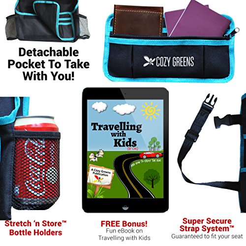 INSTALLATION SO EASY, A CHILD CAN DO IT! Say goodbye to car clutter by simply unpacking your Cozy Greens® backseat organizer, and attaching our Super Secure Strap System™ over the seat and around your headrest. Designed to fit most vehicles, the organizer is the perfect size to act as a kick mat, while not encroaching on your child's' leg room. The wide array of items this organizer holds will have you wondering why you didn't order one sooner! AMAZON CUSTOMERS SAY "Definite lifesaver!"