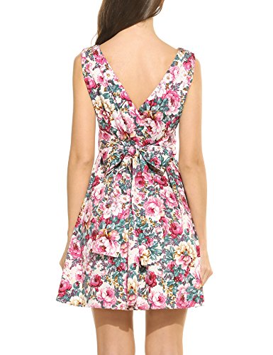 Title : ACEVOG Women's Floral Printed 1950s Vintage Sleeveless Wiggle Rockabilly V-Neck Dress