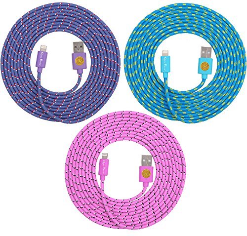 10ft Hi-Speed Braided Lightning Cable for iPhone 6s, 6, 6 Plus (ple blu pnk)