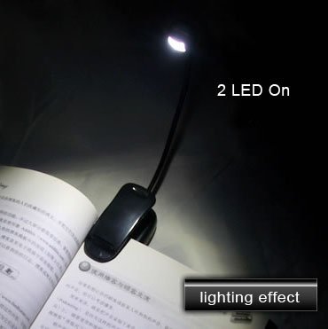 Hanerdun® 2 Bright LED Clip-On Reading Light Lamp, 800mAh Rechargeable Lithium Battery, Black, Price/Piece B00DC0XA8E