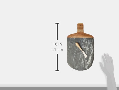 Chiseled edged slate and mango wood paddle features jute wrapped handle. Comes tied with mango wood spreader. Board may be used for serving or Decor.