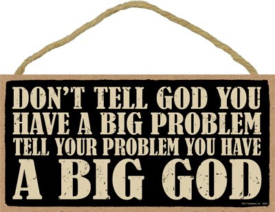 (SJT94553) Don't tell God you have a big problem, tell your problem you have a big God 5" x 10" primitive wood plaque sign