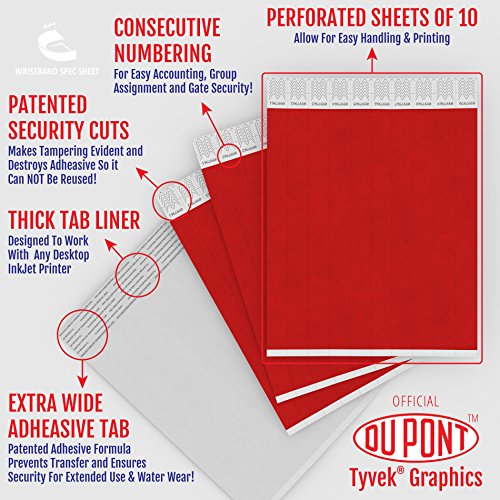-. Title : Grandstand Ink - 3/4in BRIGHT RED Tyvek® Wristbands - P.R.Int & Writable Sheets in Distribution Box