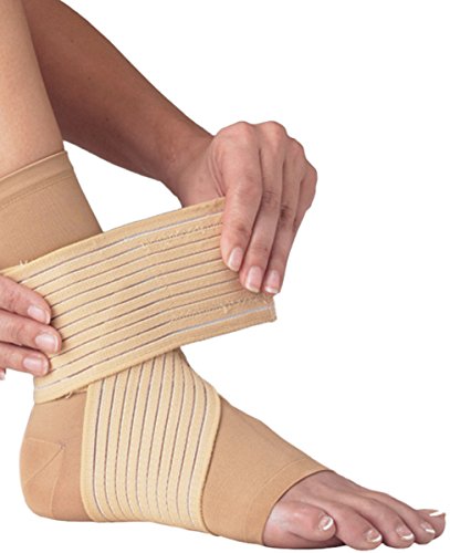 -. Feature : The mesh and elastic construction provides compressive support without restricting movement / Low-profile elastic contact closure features figure 8 straps which provide medial/lateral and arch support without adding bulk / Ideal to treat mild ankle sprains and strains, edema control, tendonitis, and medial/lateral instabilities / The easy to apply closed heel sleeve fits comfortably in athletic or street shoes / The universal fit allows the DonJoy Double Strap Ankle Support Wrap to be worn on either the left or right foot