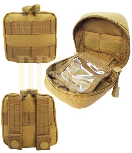 -. Feature : PAL 4x4 Utility Pouch / Unit overall dim: 4" x 4" x 2" / Removable clear vinyl pocket pocket. / Multi-function pouch, with elastic loops and pockets, in a compact size / Color: TAN ****** Quantity: 1