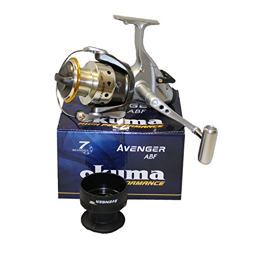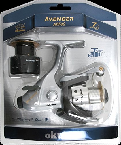 ReleaseDate : 2009-03-10 Studio : Okuma Publisher : Okuma Binding : Misc. Product Description The Okuma Avenger "ABF" baitfeeder spinning reel reflects a refinement and precision that is the culmination of a decade of research and development. It is a unique combination of tournament grade spinning reel and Okuma's patented live line bait feeding system. The Avenger "ABF" series puts a new spin on the traditional world of reels, and more importantly, what can be expected from them. Quite simply, these are ultra smooth, precision crafted reels. The light weight CNC machined spools are fitted with super smooth oil-soaked felt washers. The reel features six sealed ball bearings, for smooth operation. The Avenger ABF uses Okuma's live bait feeding system. The easy-to-reach lever (located on the body behind the handle) disengages the spool to allow the line to run freely. The tension of the free spool can be adjusted with the rear adjustment (which looks and works like a rear drag). The bait feeding system allows a fish to pick up the bait and run without feeling the drag of the reel. When you are ready to set the hook, you flip down the baitfeeder lever to engage the drag, and the conventional front drag takes over.