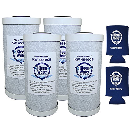 -. Feature : Four KleenWater KW4510CB carbon block water filter cartridges to remove chlorine and chemicals. / Two genuine KleenWater can holders. / 4.5" X 9.75" industry universal dImension. Improves water quality taste, odor and health impact / Replaces: GE (GXWH35F, GXH30C, GXWH40L), Whirlpool (WHKF-DWHBB), Cuno(AP801) / Sears/Kenmore(38448), Culligan(Big Blue) and Ametek (Big Blue), among others.