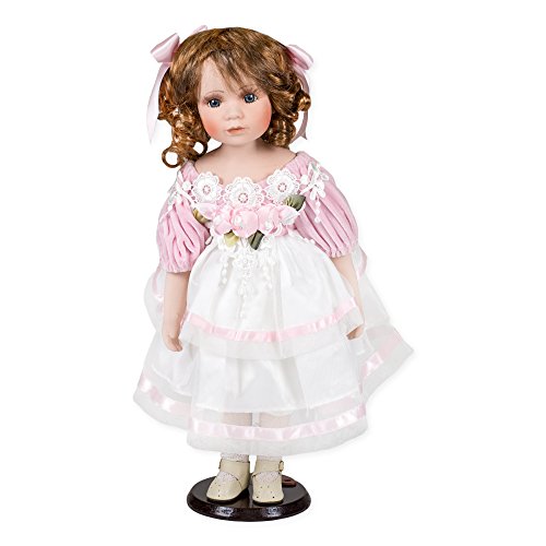 Taylor Auburn Curled Hair Pink White Dress Flowers 18 Inch Porcelain Doll