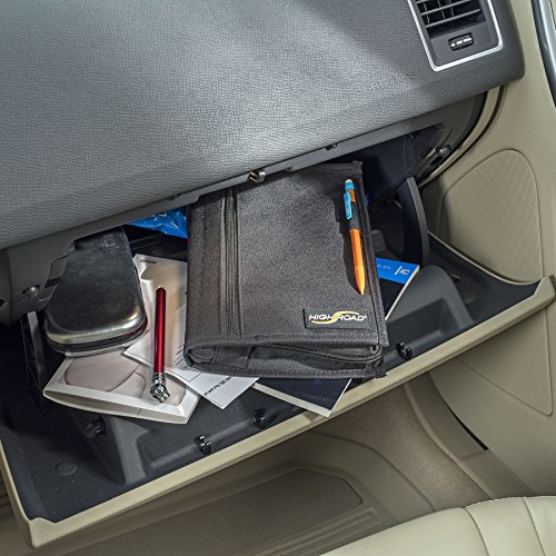 Glove compartment and console organizer features five interior pockets and a zippered outside pocket to make it easy to find what you need, when you need it