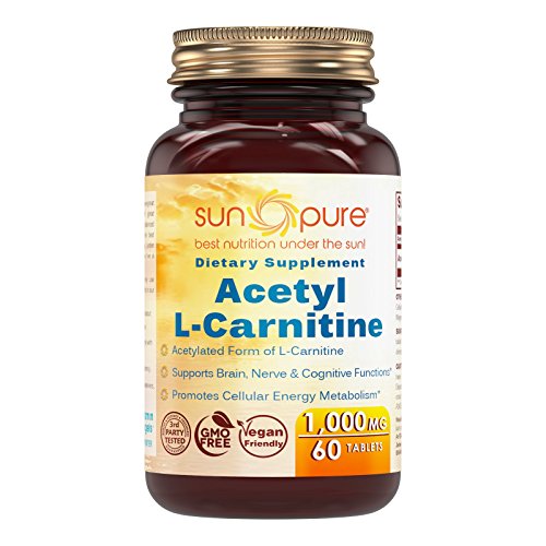 Sun Pure Premium Quality Acetyl L-Carnitine 1000 Mg Tablets Glass Bottle 60 Count