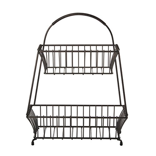 Gourmet Basics by Mikasa 5191437 Marketplace 2 Tier Flat Back Basket, Antique Black